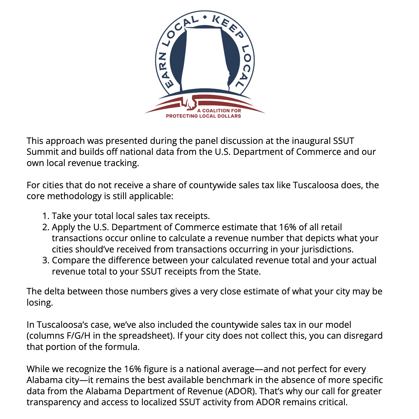 Destination sourcing wouldn’t just benefit some — it’s a win for ALL Alabama. It creates a tax system that’s fair, sustainable and makes our communities stronger.